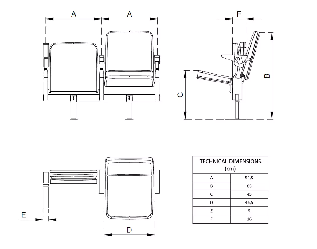 JASPER 02 Designed for retractable seating systems, this telescopic stadium chair provides durability and ease of use for stadiums needing flexible seating solutions.