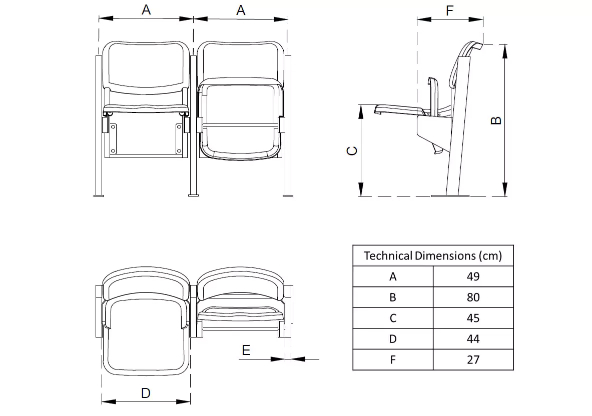 AZURITE 04 This folding stadium seat features a lightweight design and high-density foam cushioning, ideal for providing premium comfort in high-traffic sports arenas.